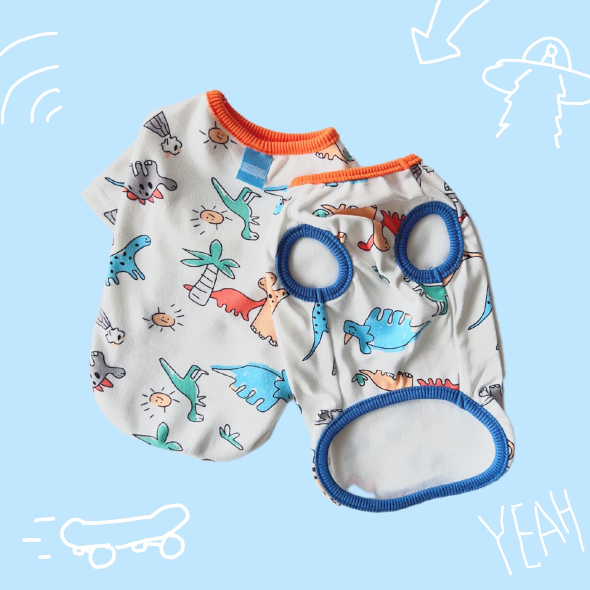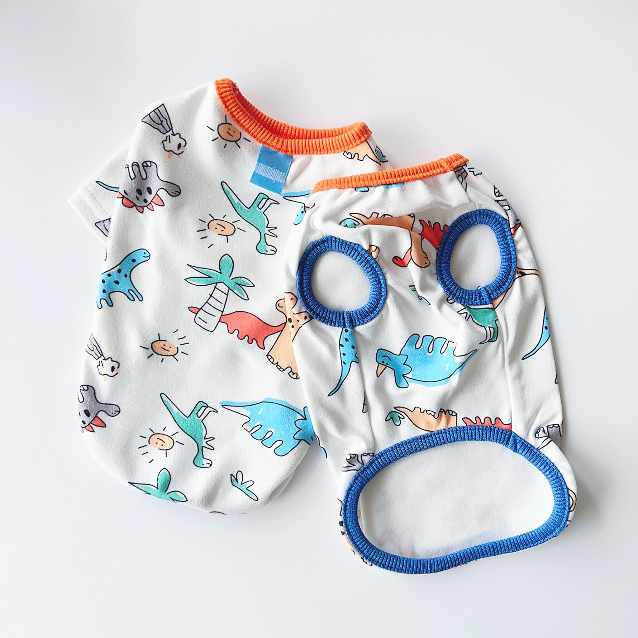 カラフルなリブに恐竜たちがプリントされた